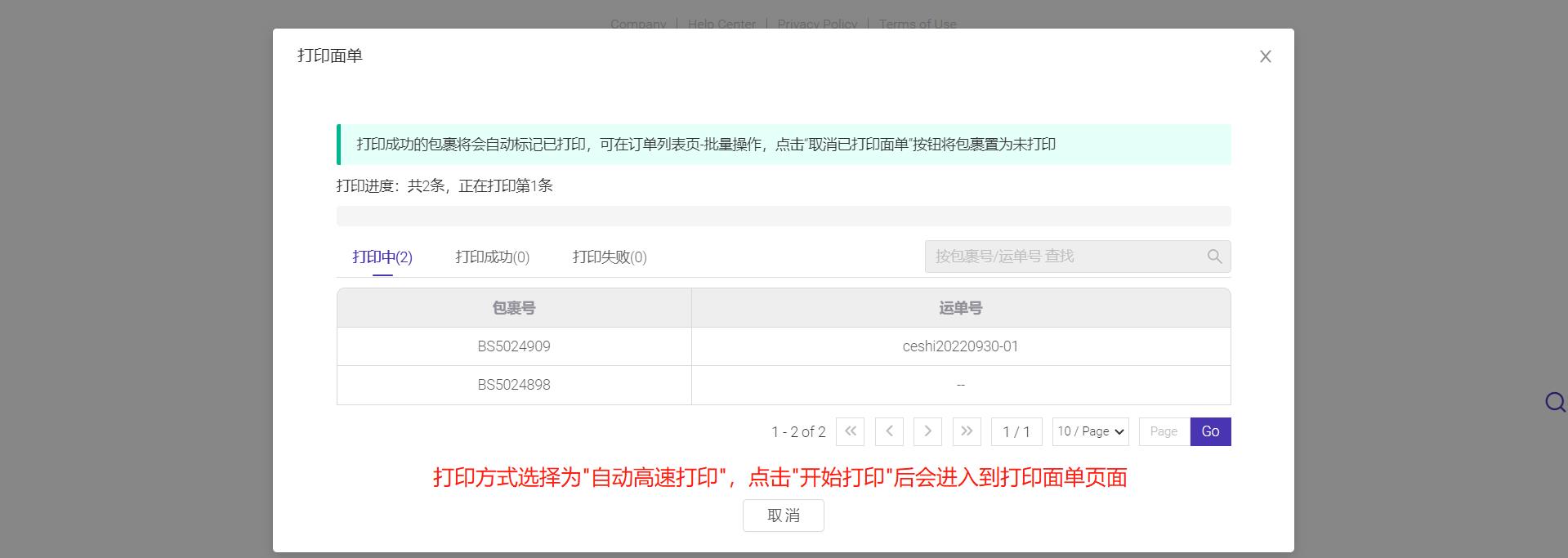 使用自动高速打印,可以批量跨平台跨物流跨店铺打印超过1000个包裹的面单。
