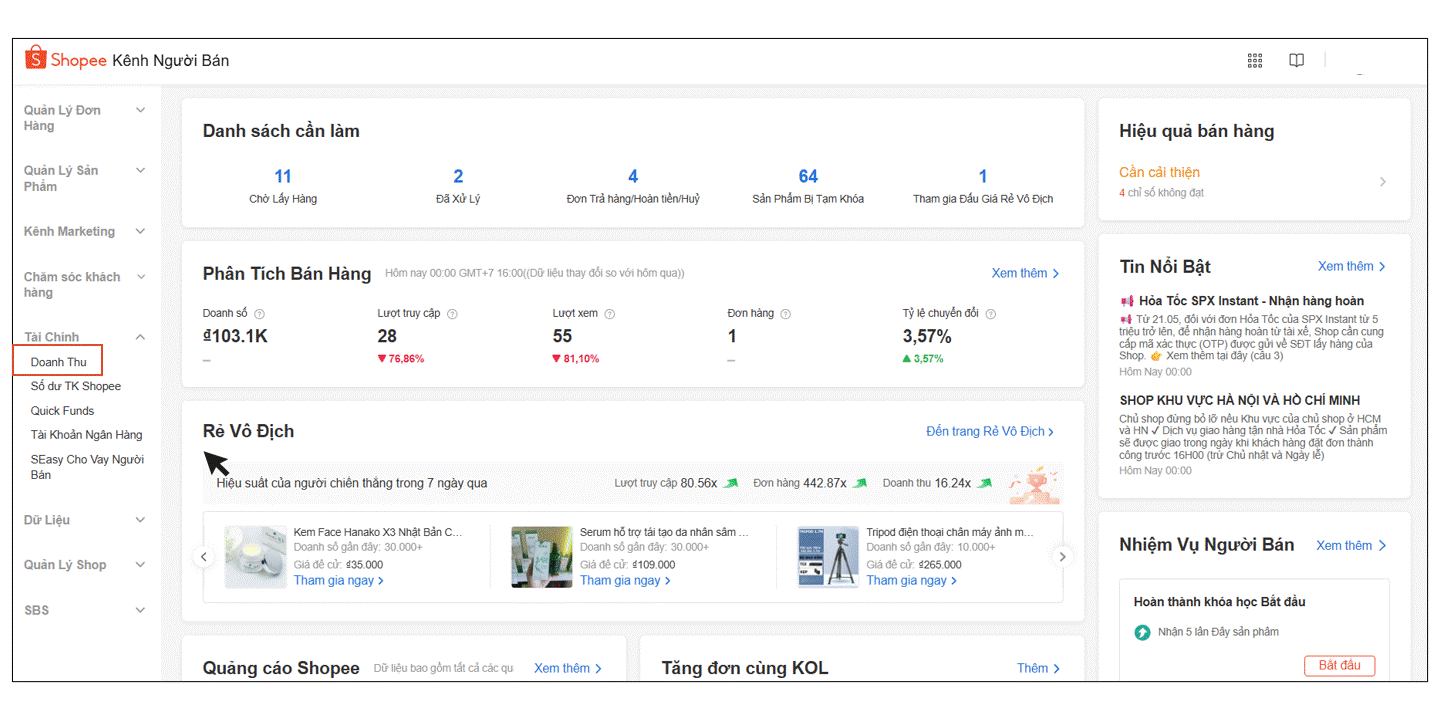 Bước 1: Truy cập mục Tài chính, chọn Doanh thu