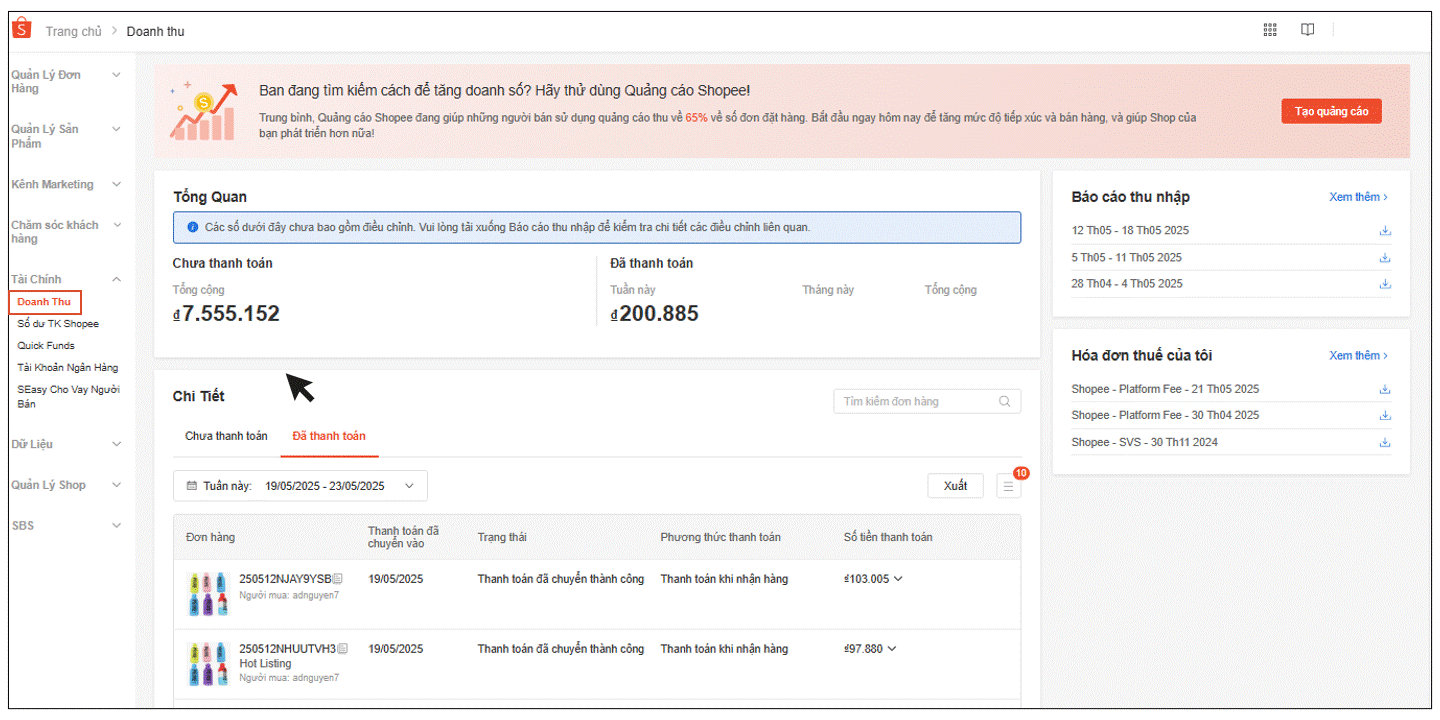 Người bán có thể kiểm tra mức Phí Hạ Tầng trên từng đơn hàng tại Kênh Người Bán theo những cách sau: