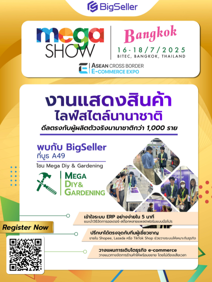 ในยุคที่ตลาดอีคอมเมิร์ซขยายตัวอย่างก้าวกระโดด BigSeller พร้อมเป็นส่วนหนึ่งของโซลูชันครบวงจรในงาน MEGA SHOW BANGKOK 2025 ที่จะช่วยผลักดันธุรกิจของคุณให้เติบโตไปได้ไกลกว่าที่เคย ด้วยระบบหลังบ้านที่ถูกออกแบบมาเพื่อสนับสนุนพ่อค้าแม่ค้าออนไลน์โดยเฉพาะ เราช่วยให้การจัดการร้านเป็นเรื่องง่าย เชื่อมต่ออัตโนมัติกับแพลตฟอร์มยอดนิยม ช่วยลดต้นทุน เพิ่มประสิทธิภาพ และพร้อมเติบโตไปกับคุณในทุกก้าวของการขยายตลาดสู่ระดับภูมิภาค และไม่ว่าคุณจะเพิ่งเริ่มต้นหรือกำลังขยายสู่ตลาดภูมิภาค ระบบของเราจะอยู่เคียงข้างทุกก้าวของความสำเร็จของคุณ