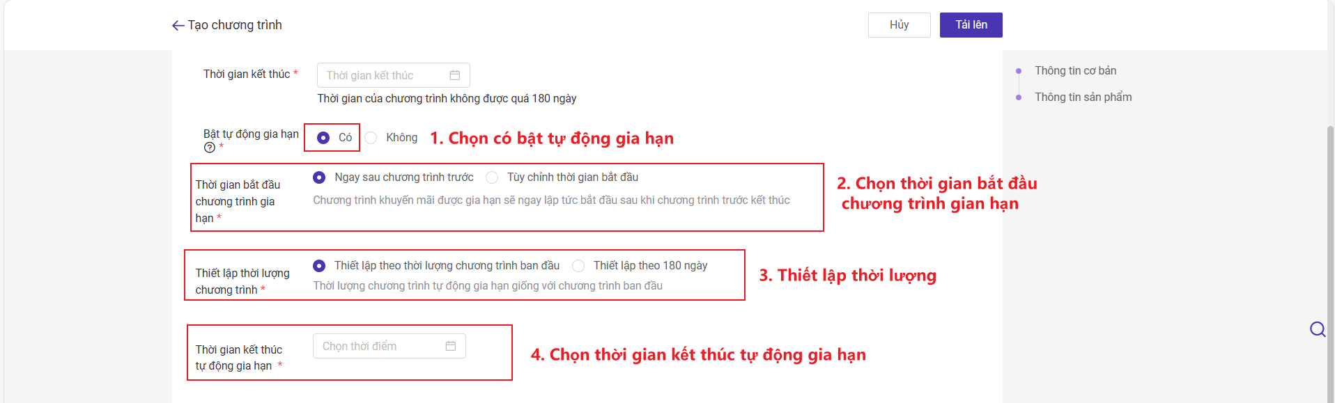 Cài đặt thời gian bắt đầu chương trình gia hạn: