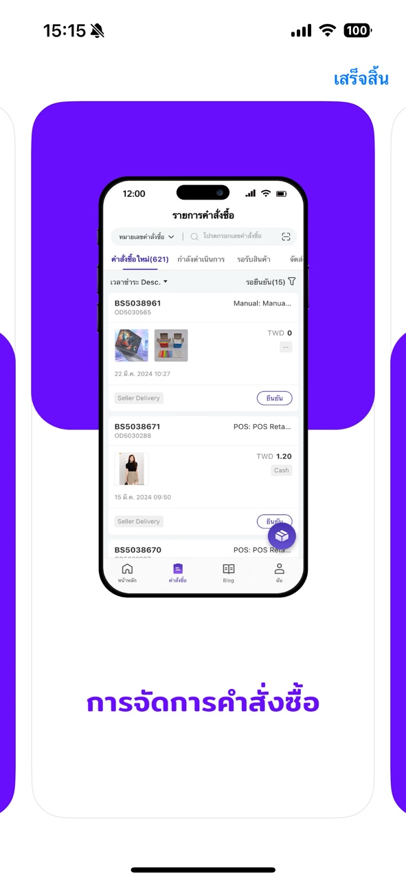 2) จัดการคำสั่งซื้อได้ง่ายในแอปเดียว