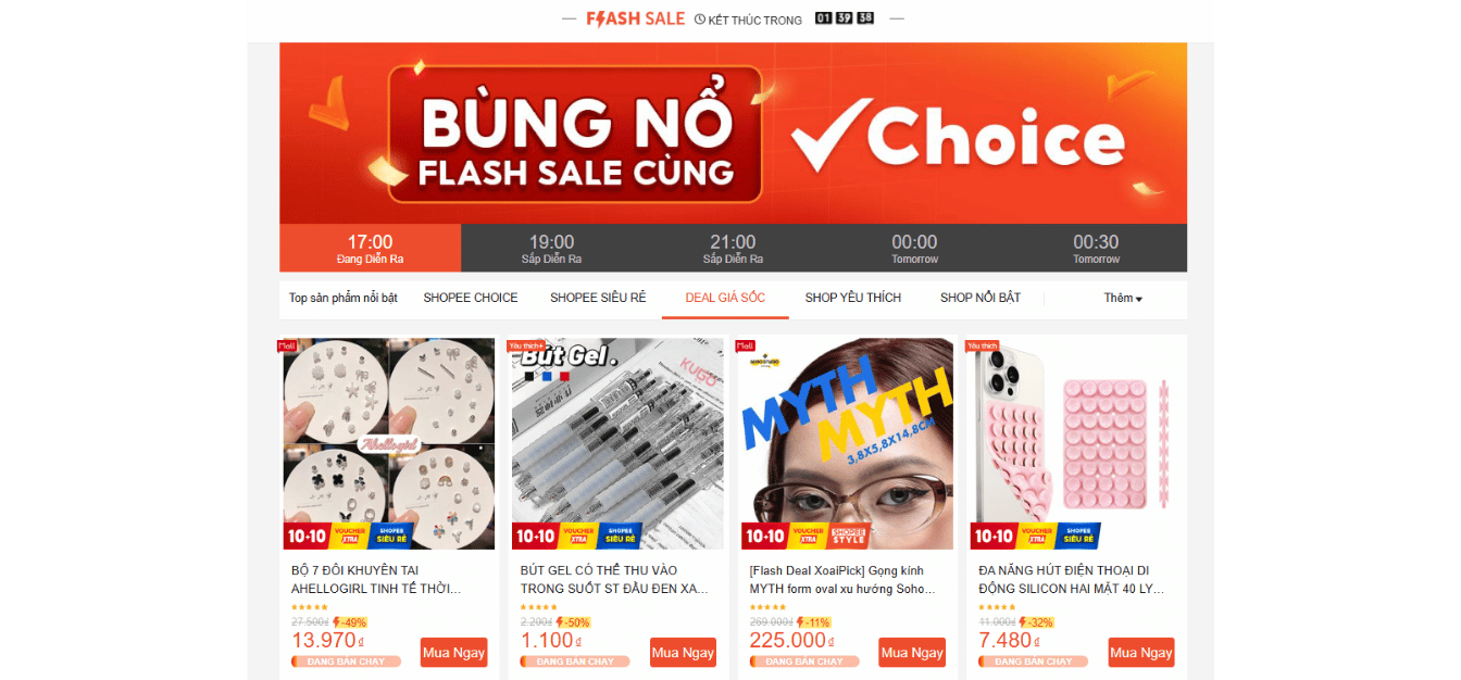 Mỗi ngày, Shopee đều có chương trình Flash Sale – nơi hàng loạt sản phẩm được giảm giá sâu trong khung thời gian ngắn.