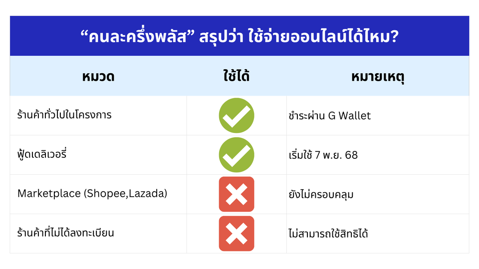 คนละครึ่งพลัส ใช้จ่ายออนไลน์ได้ไหม? รวมทุกข้อควรรู้สำหรับร้านค้าและผู้ซื้อ