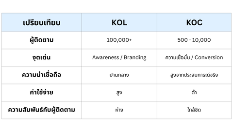 KOL สร้างการรับรู้ ส่วน KOC สร้างความเชื่อมั่น