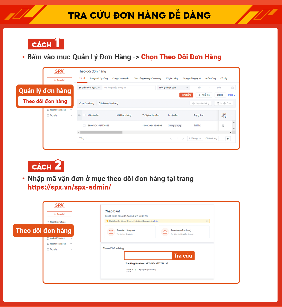Theo dõi trạng thái đơn hàng SPX (Nguồn SPX)
