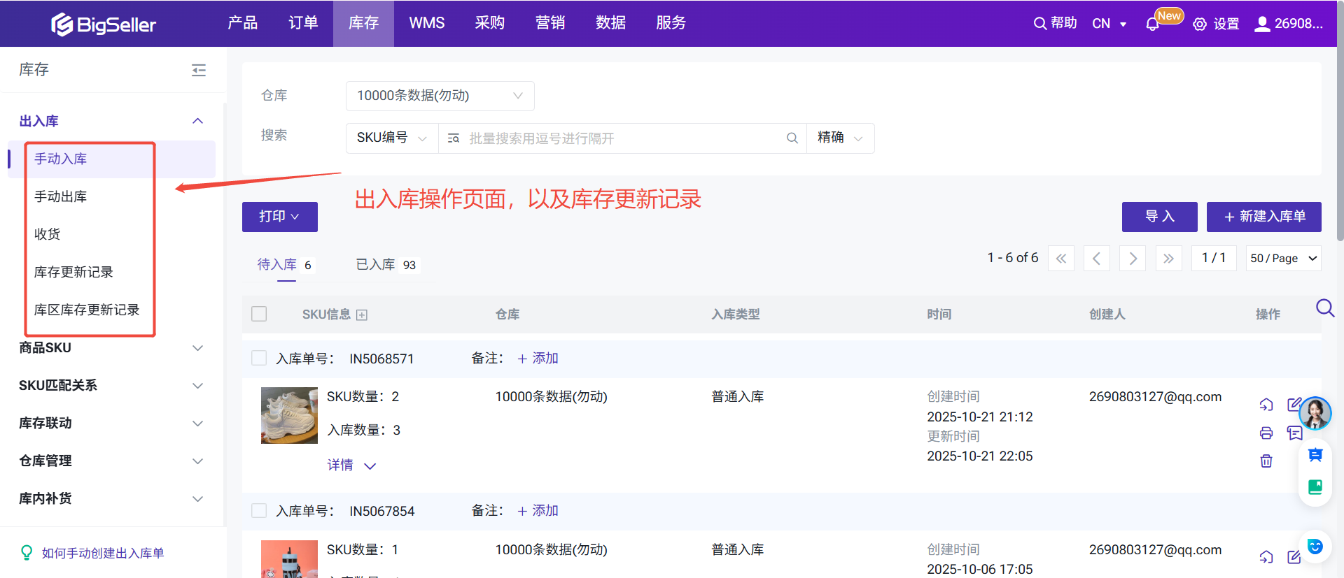 BigSeller erp针对每一次出库、入库、盘点都有操作日志,卖家可以针对自己的习惯,每周、每月做一次全面的盘点,确保库存的准确率
