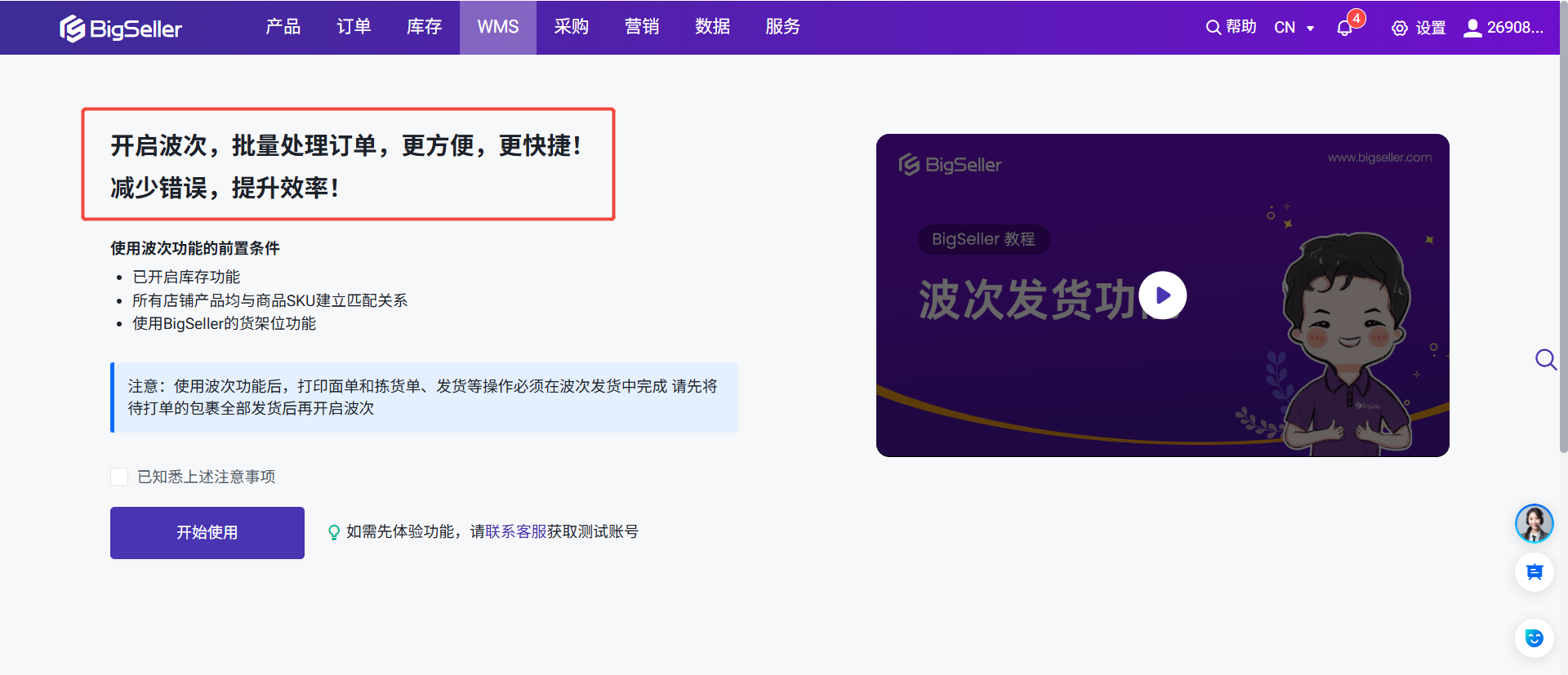 BigSeller的波次功能,将具有相同类型属性的订单生成同一批任务,用来处理拣货、打单、包装,适用于订单量大的卖家,能使仓库作业流程更加标准化,有效减少仓库走动、降低错误率、提升发货时效。