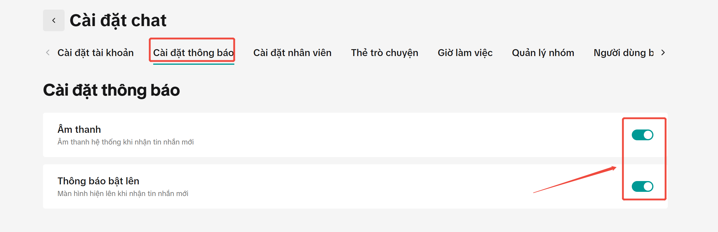 Máy tính: Cài đặt > Cài đặt cá nhân > Thông báo tin nhắn