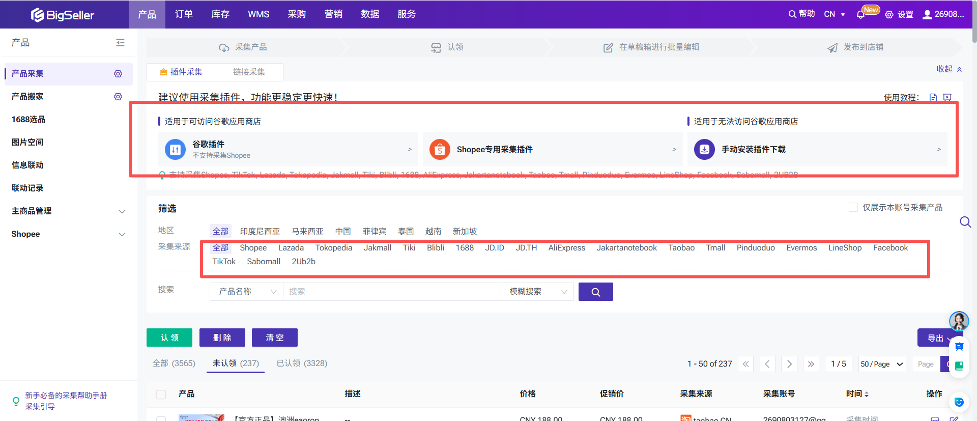 通过BigSeller采集插件,可以采集淘宝、拼多多、1688、天猫、Shopee、Lazada、TikTok等电商平台的产品到Shopee平台,采集过程中,产品主图、产品详情页、listing都可以一并采集过来