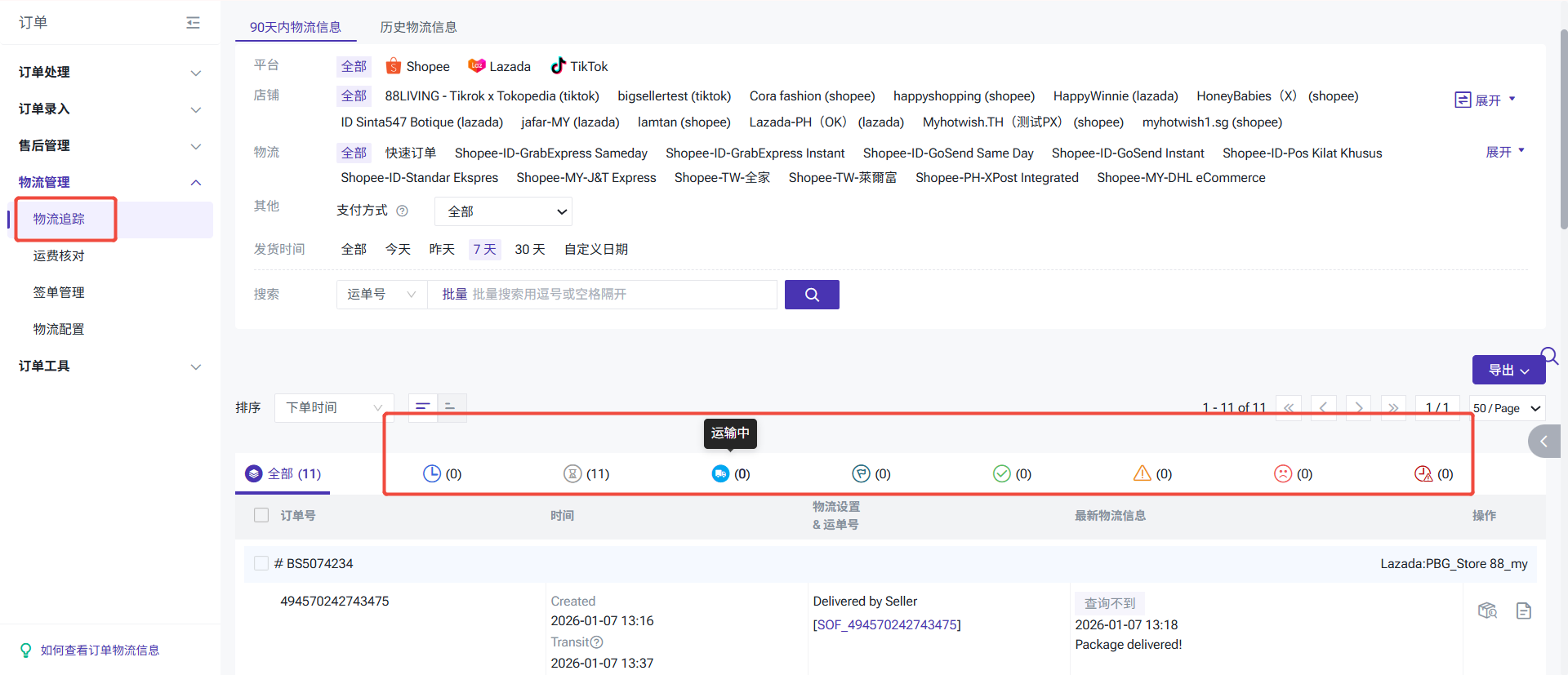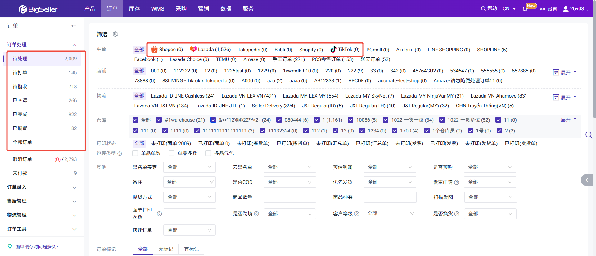 在BigSeller,只要出单,订单就会同步到BigSeller的订单模块,卖家可以在BigSeller一次性出来多平台,多店铺的订单,实现快速发货