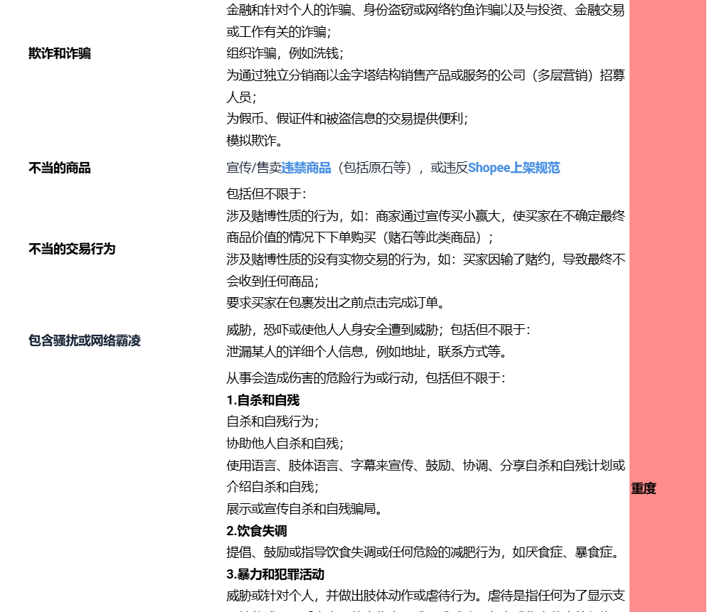 3)重度违规: