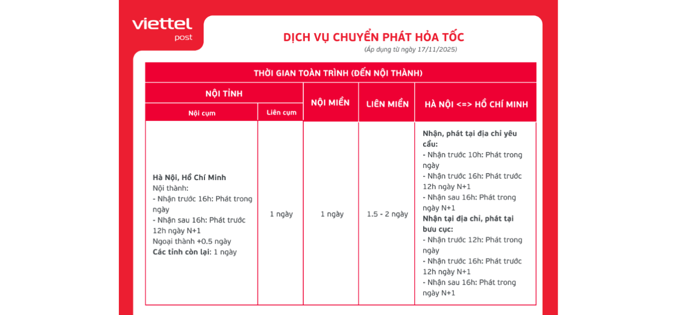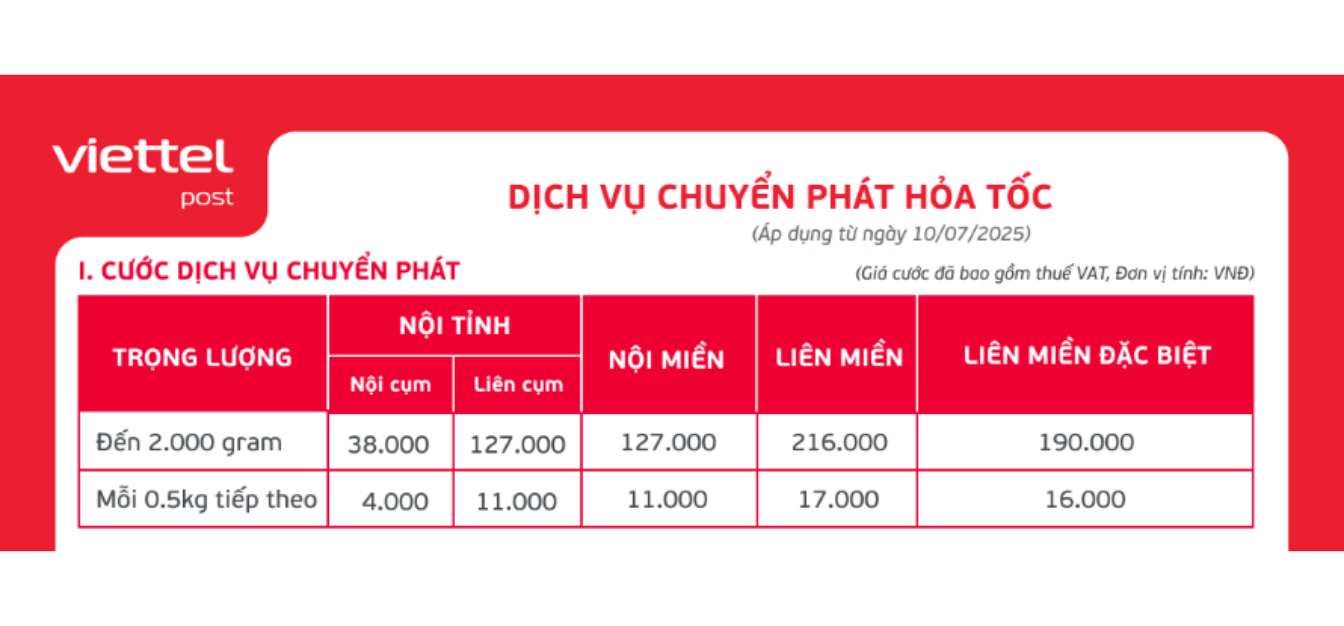 Dịch vụ chuyển phát hỏa tốc Viettel Post và bảng giá dịch vụ Viettel Post 2026