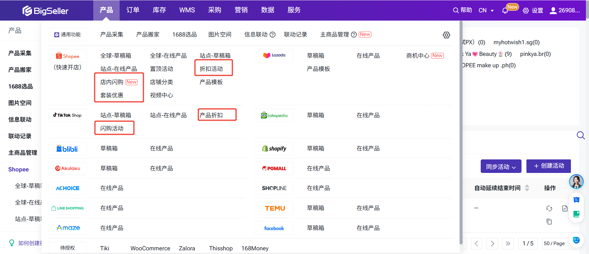 功能利用:在 BigSeller 中创建和管理各站点的折扣活动、优惠券、捆绑销售、加购优惠。