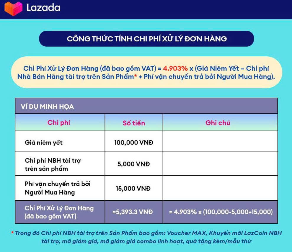 Mức phí xử lý đơn hàng Lazada cập nhật 2026