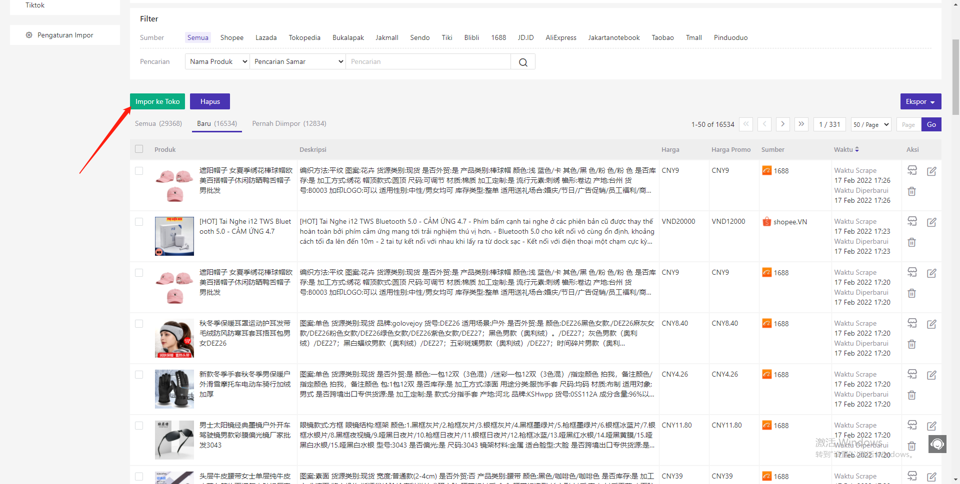 Ingin tau bagaimana cara Scrape produk dari Marketplace China seperti(1688, taobao, pingduoduo dan AliExpress) lalu dengan cepat mengupload produk tersebut di marketplace Indonesia, simak langkah-langkah berikut.