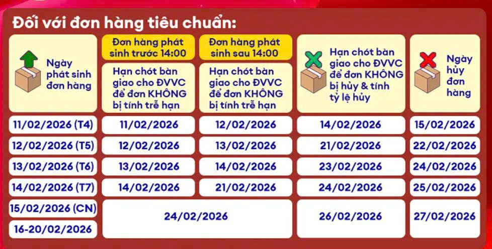 Thời gian xử lý đơn hàng Lazada dịp Tết Nguyên Đán 2026