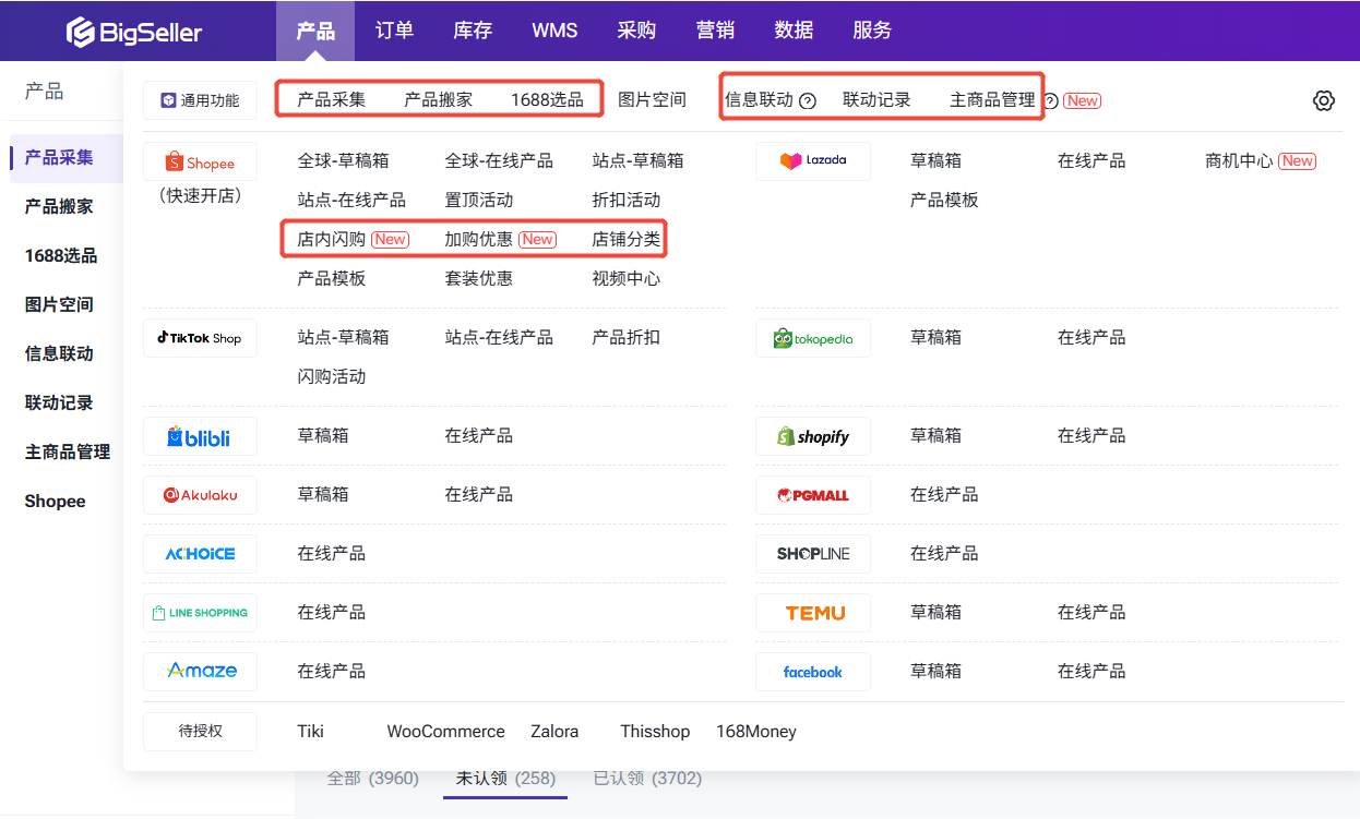 BigSeller是TikTok、Shopee、Lazada等东南亚电商平台官方对接的店铺管理系统,为电商卖家提供产品批量上架刊登,订单批量处理,多平台、多店铺库存同步,数据分析等功能,帮助卖家一站式管理本土店铺。