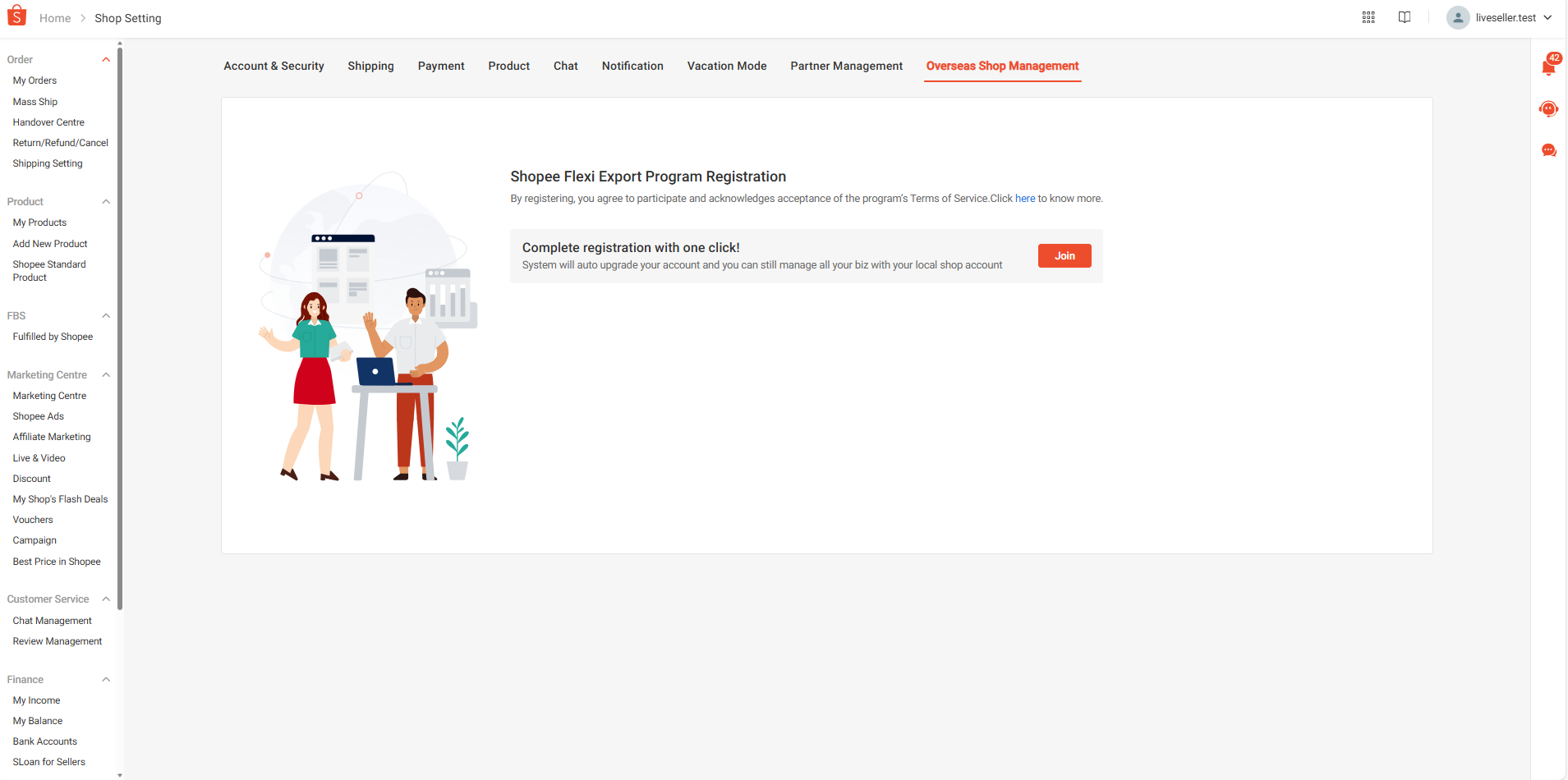 - Begin the onboarding process: Click "Join" to activate your international seller channel.