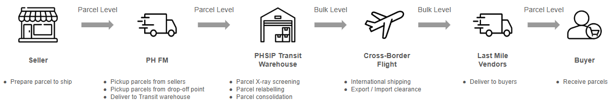 (2). PH SPX Express delivers the parcels to the PH Direct Selling transit warehouse for screening and consolidation.
