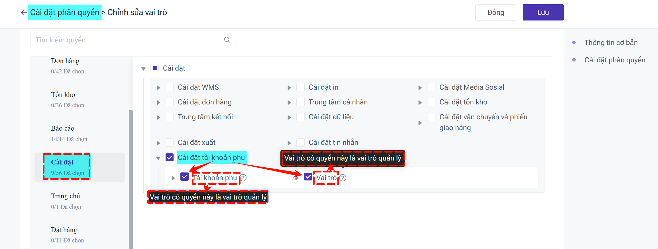 Quyền hạn theo module vận hành