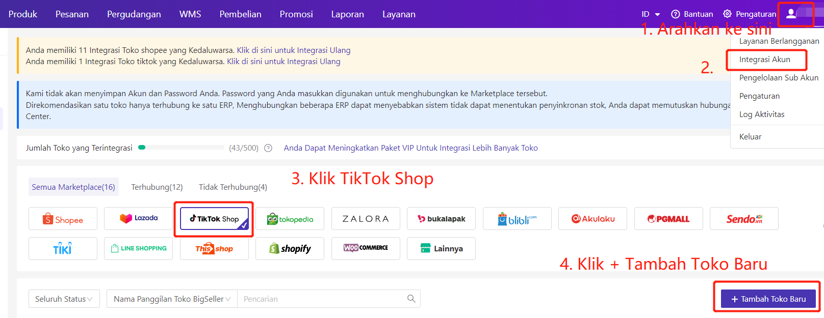 - Selesai — toko TikTok Shop Anda kini terhubung ke BigSeller