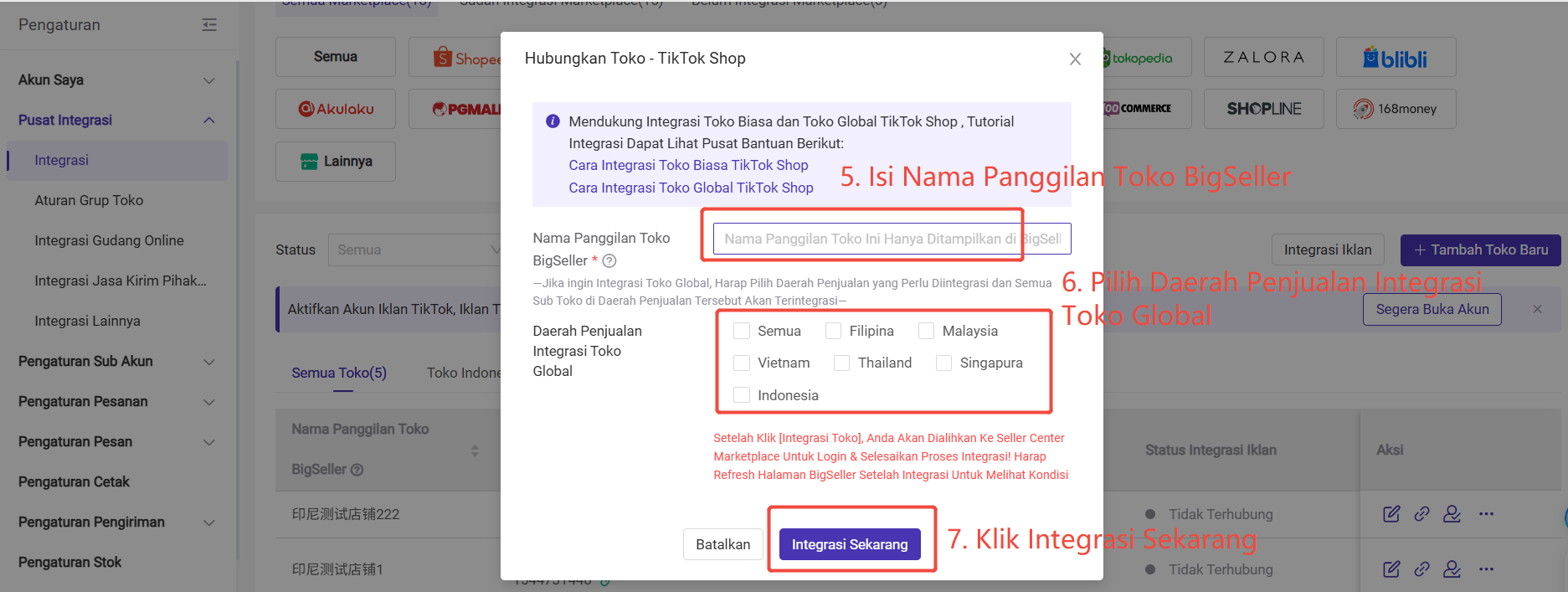 - Pilih Daerah Penjualan → pilih Integrasi Toko Global