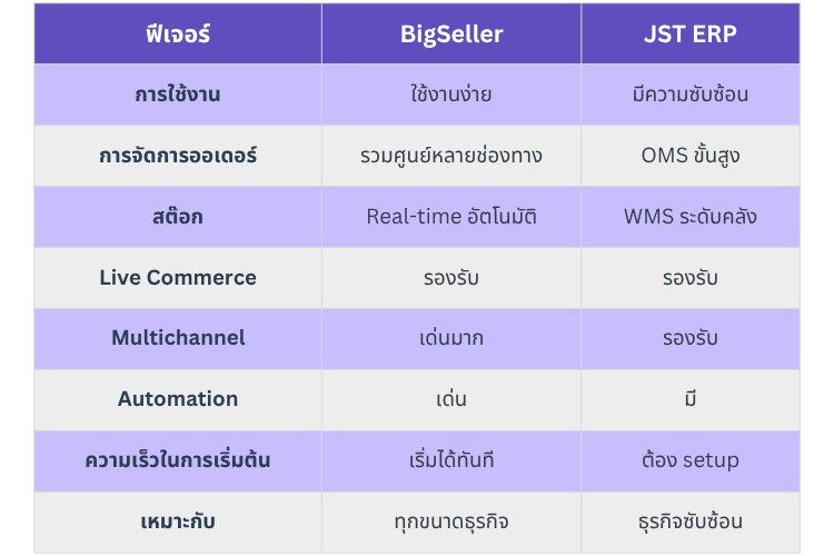 เปรียบเทียบ BigSeller vs JST แบบชัดเจน