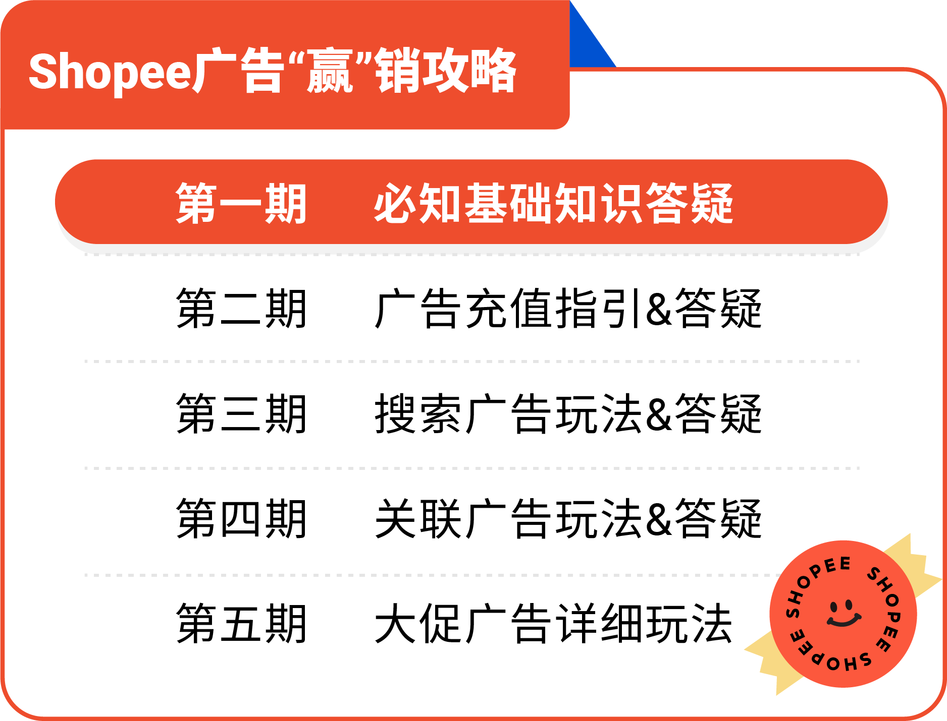 新人不懂如何投广告?想要提升广告排名?作为高效引流利器,Shopee广告一直是卖家们关心的热门话题,尤其是刚入门的卖家朋友对广告还有不少疑惑。为此小编特携手官方广告专家打造全新栏目《Shopee广告“赢”销攻略》,超全干货让你轻轻松松从小白到大神,玩转广告收割流量,弯道超车成大卖!