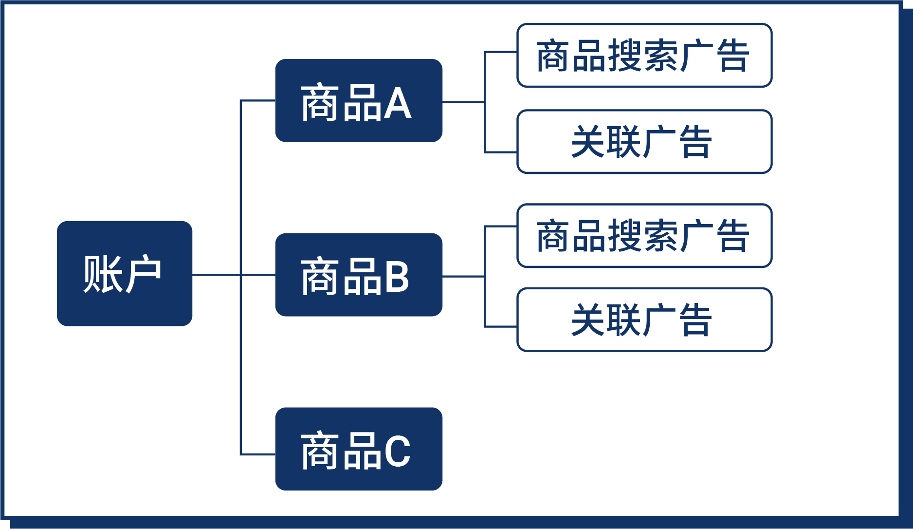 Shopee广告账户主要包括账户下各商品的广告活动。以一个Shopee账户为例,账户下包含多个商品,每个商品常见的广告活动则有商品搜索广告和关联广告两种: