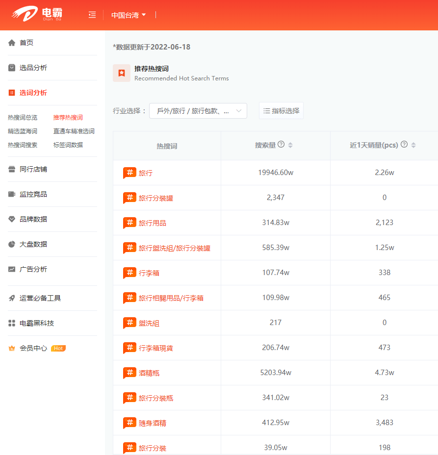 电霸Shopee选词分析推荐(网址为:https://shopee.dianba6.com/?invite_code=JCSmvOsR)能够找到热词在当地的搜索热度,和这个词下面每周的销售额数据统计,根据自身所做行业类目筛选,找出与自己产品匹配度较高的词,选择的时候记得去前台搜索一下,看一下用这个热词的卖家多不多。