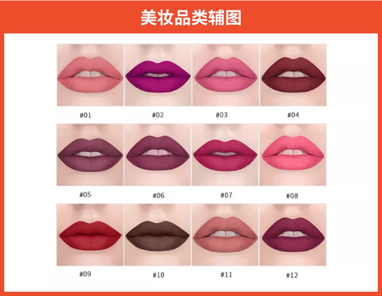 而辅图则是用来补充产品的其他信息,包括但不限于主图无法完全展示的信息,像美妆卖家上新口红可以将不同色号效果图作为辅图;