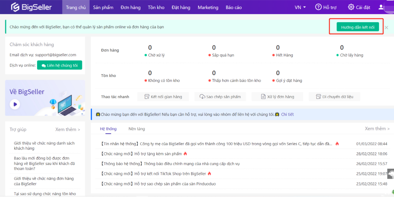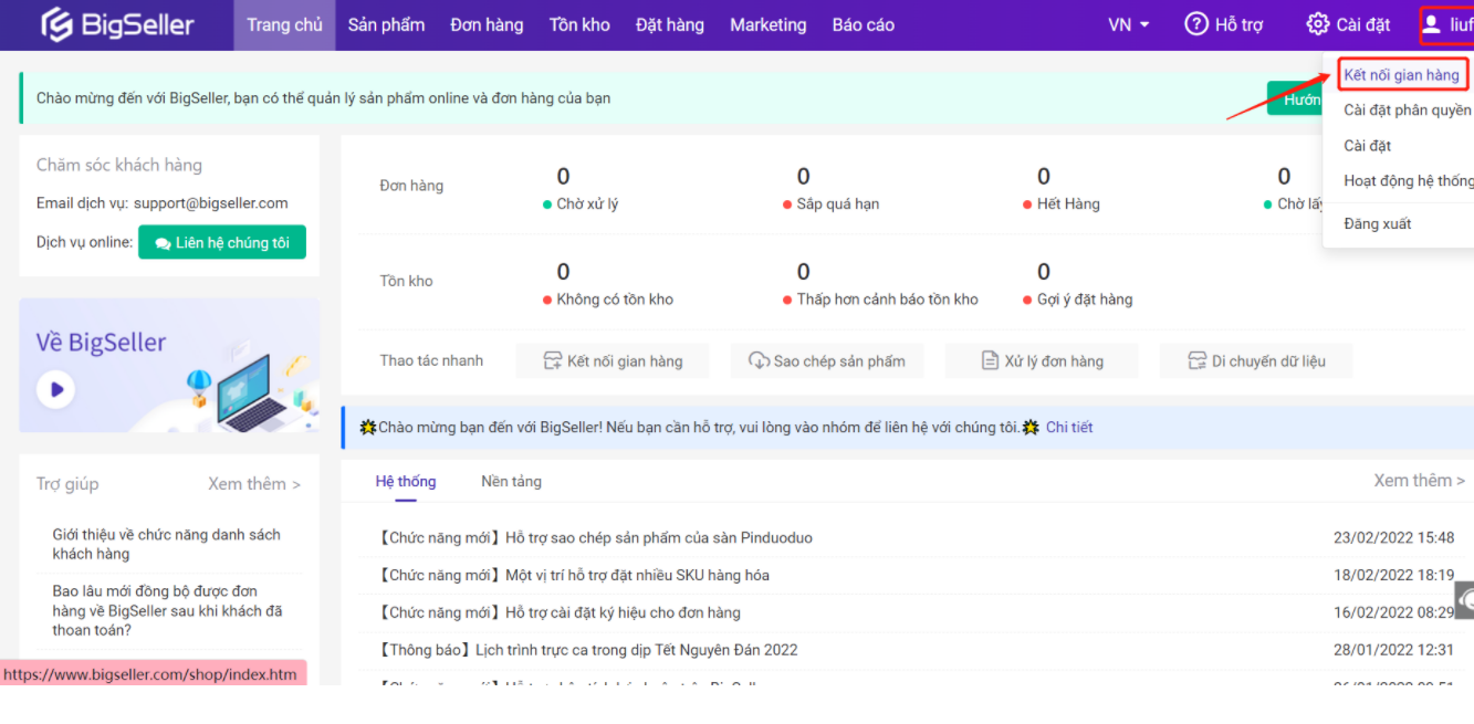 Trước khi sử dụng BigSeller để quản lý shop của bạn, bạn cần kết nối với shop để tiến hành cấp quyền.