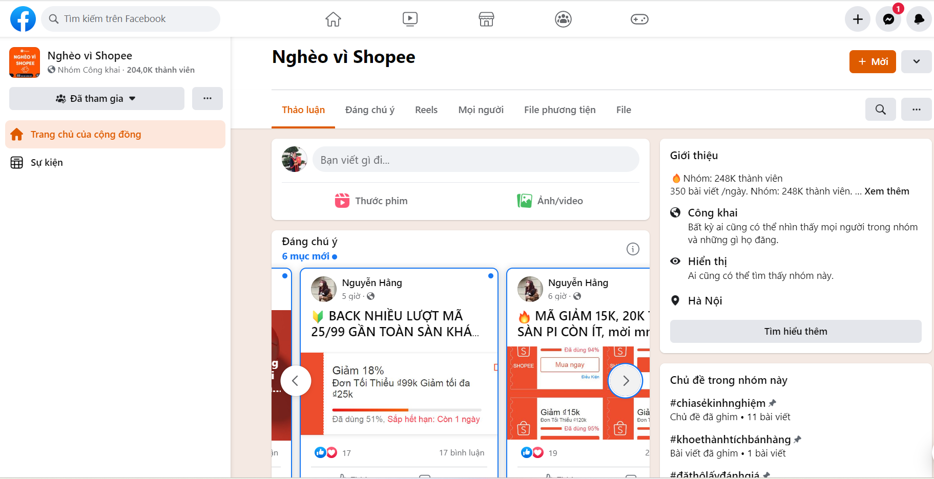 Ngoài ra, bạn cũng có thể gia nhập vào các hội affiliate shopee để học hỏi kinh nghiệm từ các thành viên khác. Ví dụ như Group Nghèo vì Shopee : đây là một group về Affiliate Shopee vô cùng chất lượng. Tham gia vào hội affiliate sẽ giúp bạn tiếp cận với những người có cùng mục đích và sở thích, và họ có thể giúp bạn cải thiện chiến lược tiếp thị liên kết của mình.