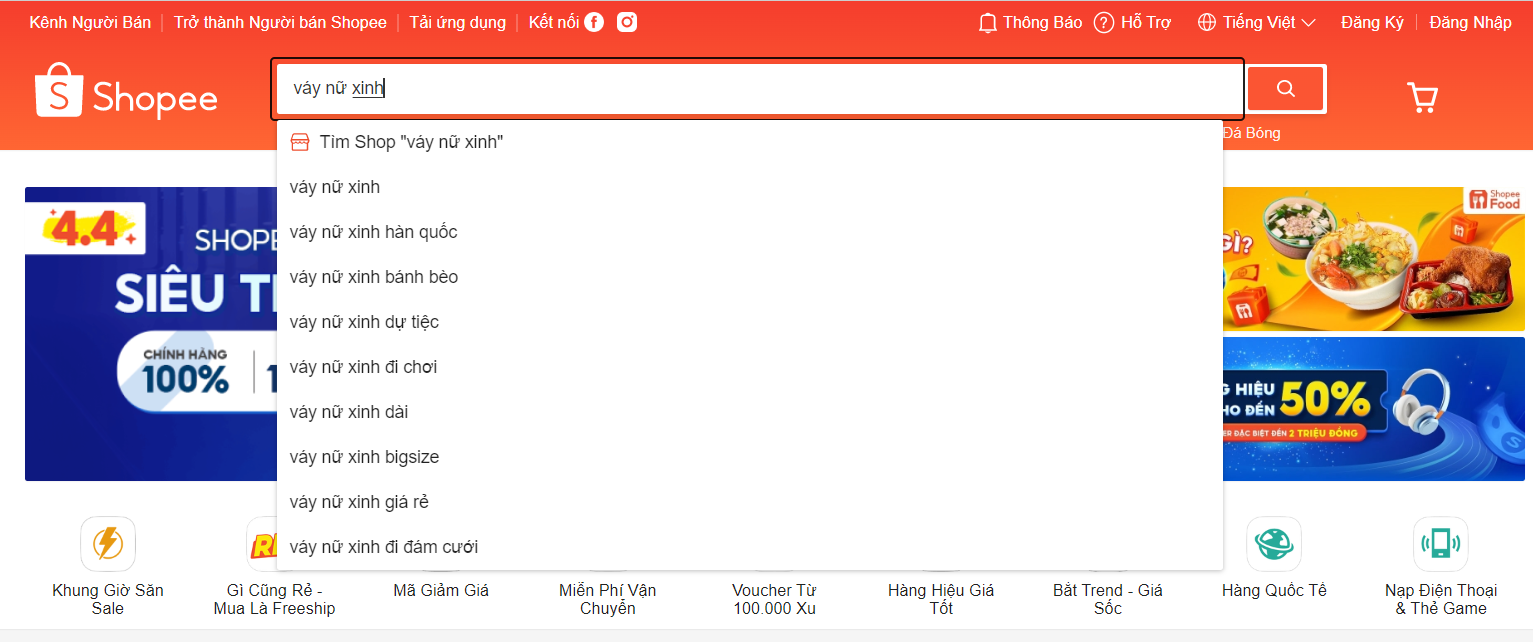 3.2. Sử dụng thanh tìm kiếm và gợi ý của Shopee