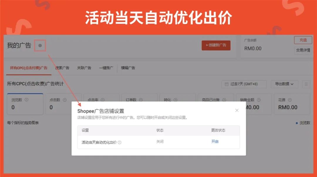 Shopee还推出了“活动当天自动优化出价”功能,此功能仅在大促当日24小时内有效,并且仅选择效果好的广告进行开启。