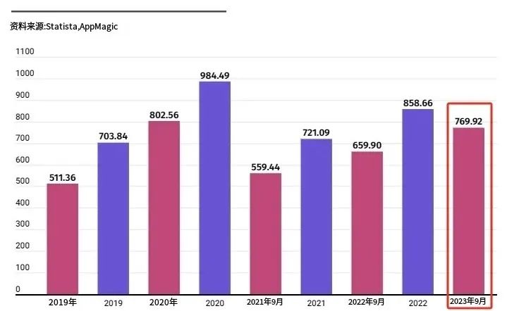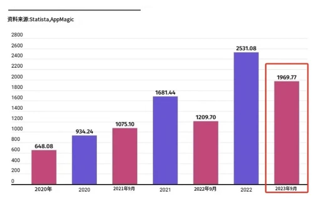 另外,TikTok的应用内购买(IAP)收入也创下了最高纪录。根据Statista和AppMagic的数据,2023年前九个月,TikTok用户在该应用上花费了近20亿美元,与去年同期相比增长了62%。其中,TikTok第三季度应用内购买收入超过6.8亿美元,创下单季营收历史新高。