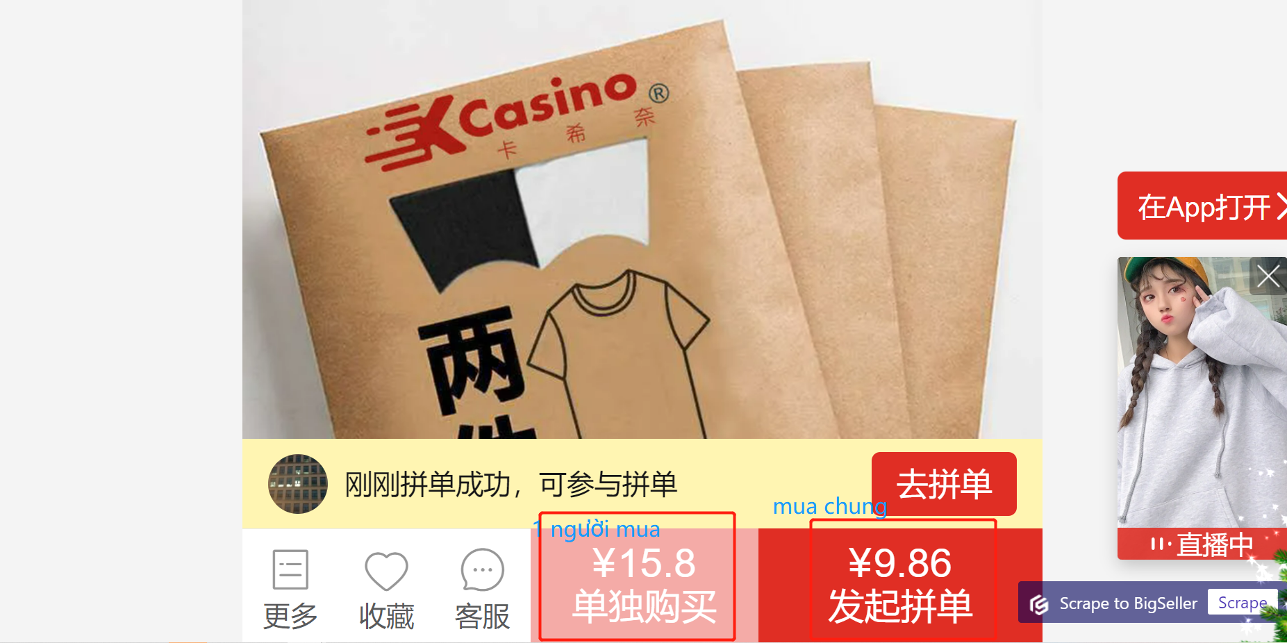 BigSeller chúng tôi đã ra mắt tính năng hỗ trợ sao chép sản phẩm Pinduoduo lên shop của bạn trên các sàn Shopee, Lazada, Sendo, Tiki. Bạn có thể truy cập vào trang chi tiết sản phẩm để sao chép, để tiến hành sao chép sản phẩm Pinduoduo, bạn không cần tải app Pinduoduo, chỉ cần mở 3 trang web truy cập Pinduoduo dưới đây ra, đăng nhập tài khoản Pinduoduo của bạn, tìm kiếm sản phẩm, sau khi bấm vào trang chi tiết sản phẩm sẽ hiện ra ô tiện ích sao chép của BigSeller màu xanh ở góc phải màn hình, bạn click chuột vào ô đó thì sẽ sao chép được toàn bộ sản phẩm từ hình ảnh, phân loại, mô tả,... sau đó bạn tìm kiếm sản phẩm ưng ý khác và sao chép tiếp. Lưu ý là chúng tôi trước mắt chỉ hỗ trợ sao chép từng sản phẩm Pinduoduo và chưa hỗ trợ sao chép hàng loạt như các trang Taobao, Tmall hay 1688 nhé!